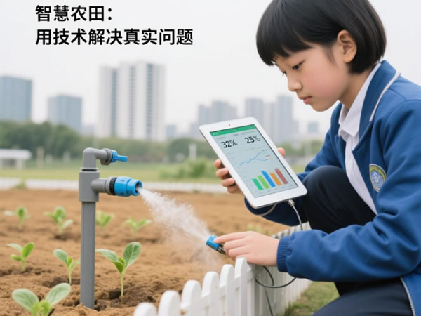 ▲“智慧农田”(工程类):编程控制灌溉系统,计算作物生长变量。